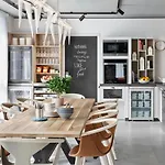 Our new favorite place to stay in Bern. A small kitchen was well-equipped with an electric kettle, a dishwasher and a refrigerator...